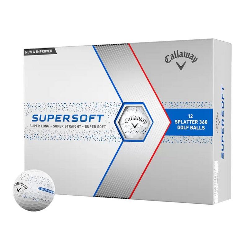 The Callaway Supersoft golf ball stands out as a favorite among golfers, cherished for its exceptional combination of long, straight distance and, crucially, its incredibly soft feel. Callaway have pushed the boundaries further by enhancing the cover, core, and construction technologies, amplifying these core advantages and delivering improved performance from tee to green. And now, experience an even greater advantage with our innovative alignment technology, 360 Splatter. This visually striking design offers clear and precise feedback on every putt, ensuring an enhanced putting experience with every stroke.